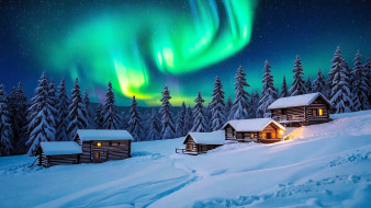 Раздел Рисованное (северное сияние, ночь, лес, деревья, зима, дома, снег, ) https://www.artfile.ru/s.php?s=18