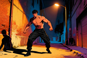Раздел Рисованное (парень, торс, брюки, улица, фонарь, дома, ) https://www.artfile.ru/s.php?s=18